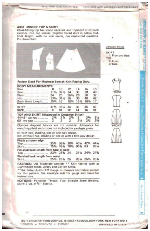 Butterick 4303 Top, Skirt Size: 12 Uncut Sewing Pattern