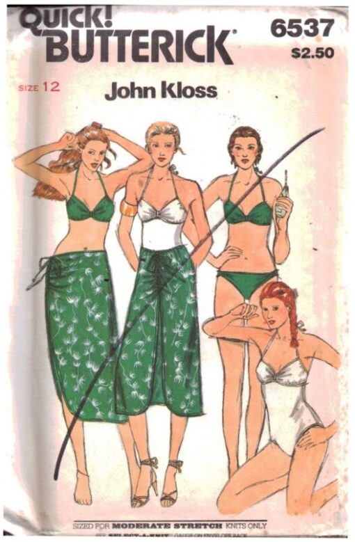 Butterick 6537 Swimsuit, Bikini, Skirt Size: 12 Uncut Sewing Pattern