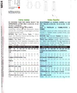 Butterick 6914 Top, Pants Size: B 12-16 Used Sewing Pattern