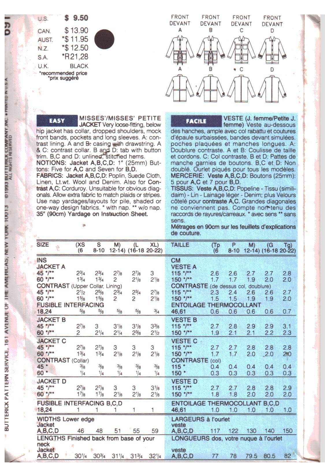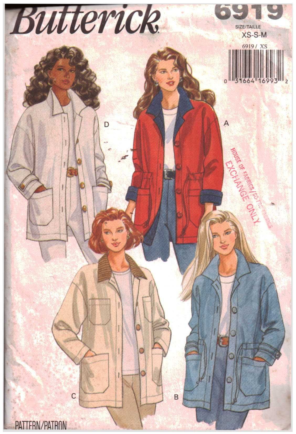 Butterick 6919 Jacket Size: XS-S-M Uncut Sewing Pattern