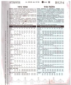Butterick B5254 Coat, Jacket Size: E5 14-16-18-20-22 Uncut Sewing Pattern