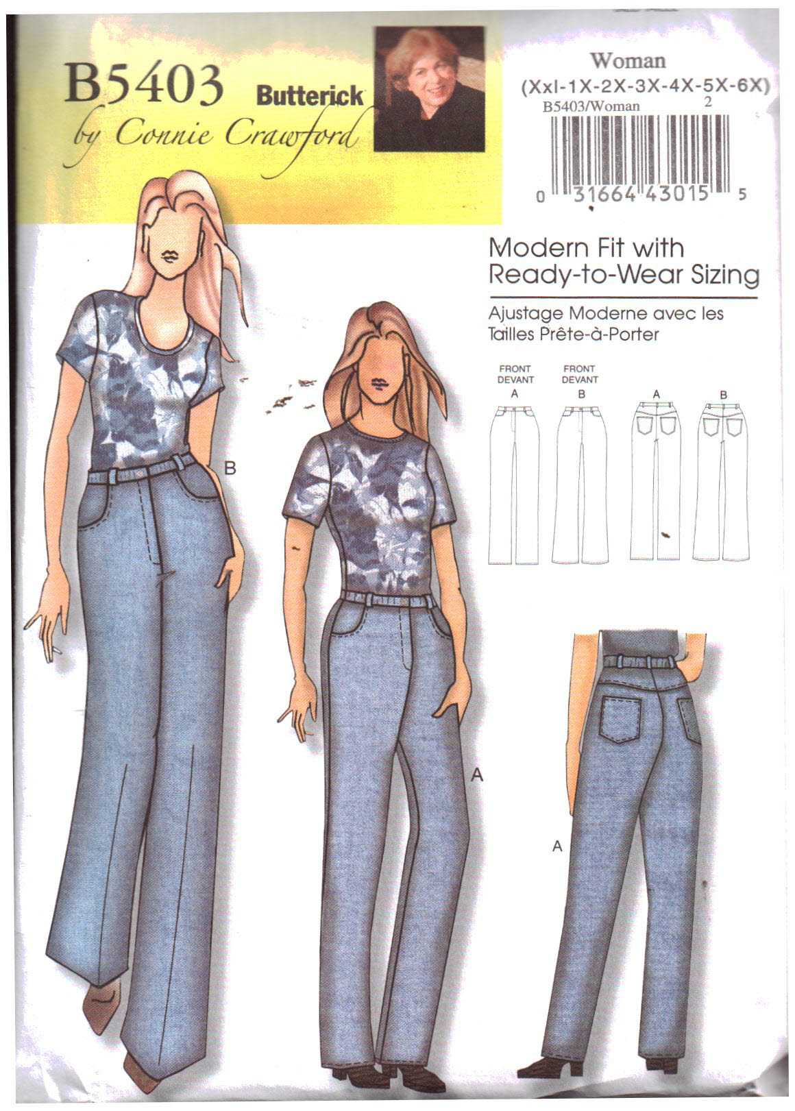 Butterick B5403 Jeans Size: XXL-1X-2X-3X-4X-5X-6X Uncut Sewing Pattern