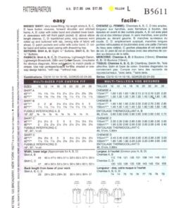 Butterick B5611 Shirt Size: C5 10-12-14-16-18 Uncut Sewing Pattern