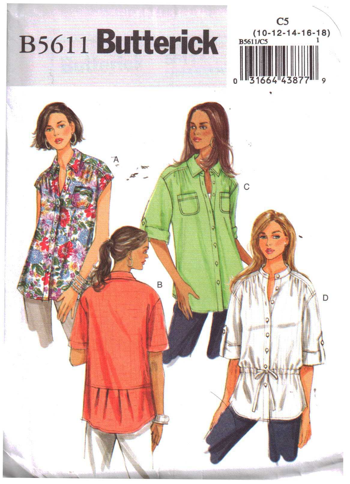 Butterick B5611 Shirt Size: C5 10-12-14-16-18 Uncut Sewing Pattern