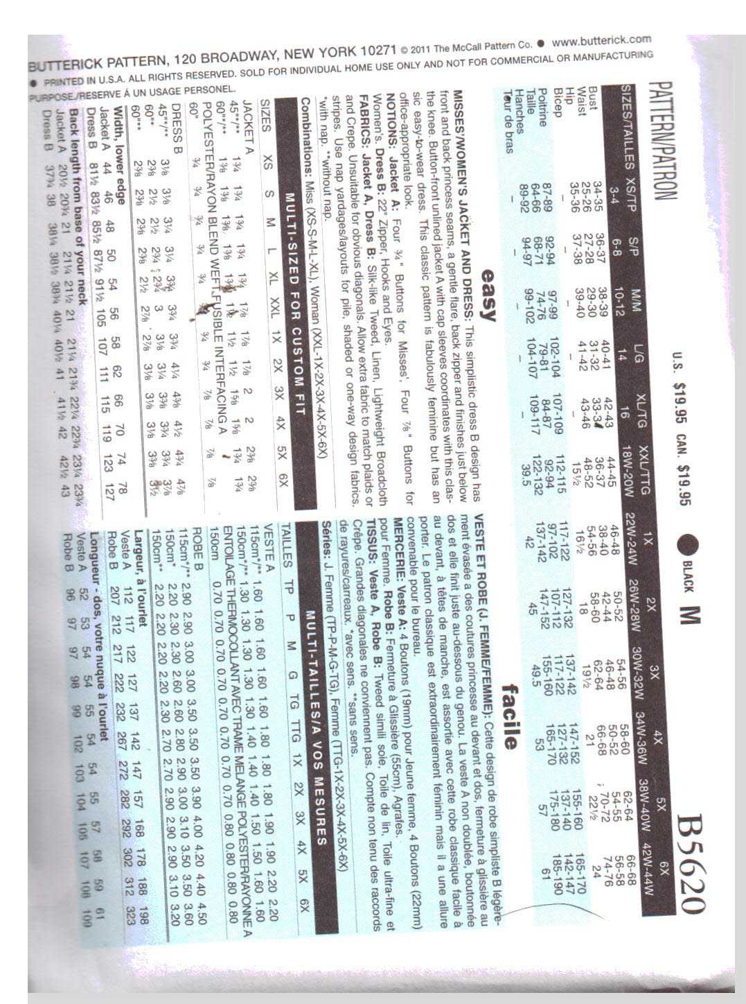 Butterick B5620 Jacket, Dress Size: W XXL -6X Uncut Sewing Pattern