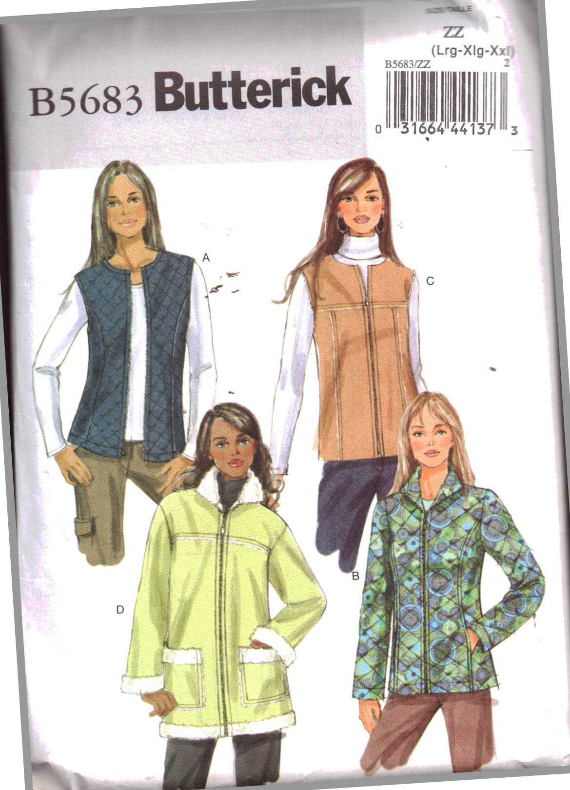 Butterick B5683 Vest, Jacket Size: ZZ L-XXL Uncut Sewing Pattern