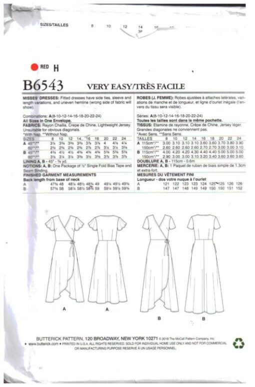 If this Butterick B6543 sewing pattern is not exactly what you are looking for please do look at my other similar listings; I stock a wide variety of vintage and recycled patterns lovingly collected at estate sales, thrift stores and every place I can find them and listed here for your shopping convenience.