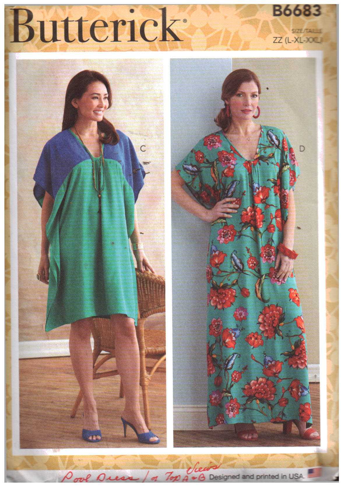 Butterick B6683 Tunic, Caftan Size: ZZ L-XL-XXL Uncut Sewing Pattern