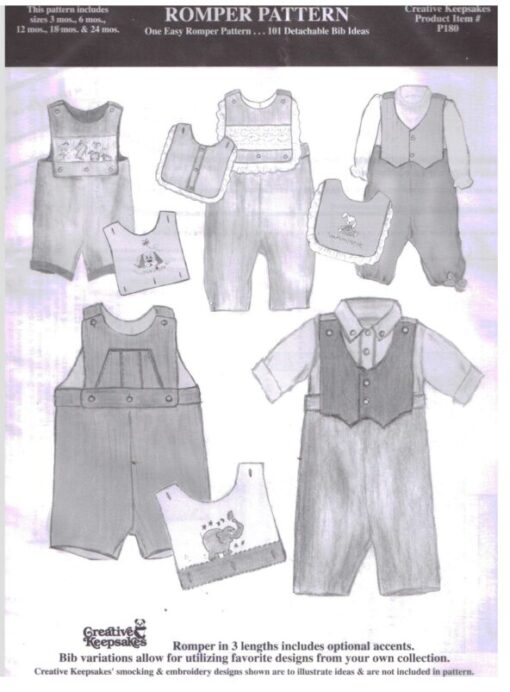 Creative Keepsakes P180 Attach a Bib Romper Size: 3Mo,6Mo,12Mo18Mo,24Mo Uncut Sewing Pattern