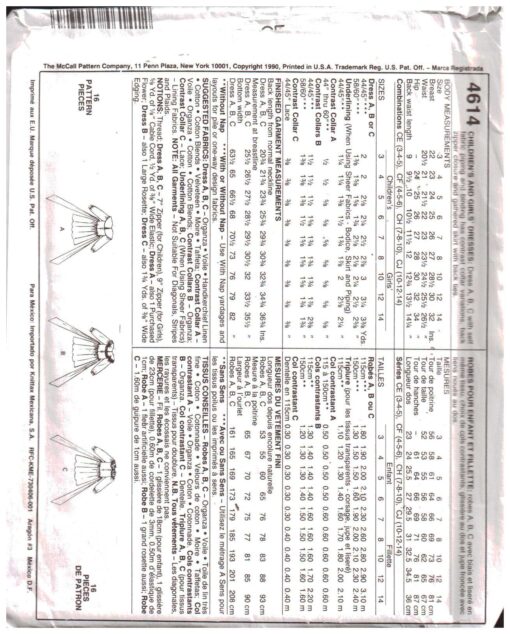 McCall’s 4614 Girls Dress Size: CE 3-4-5 Uncut Sewing Pattern