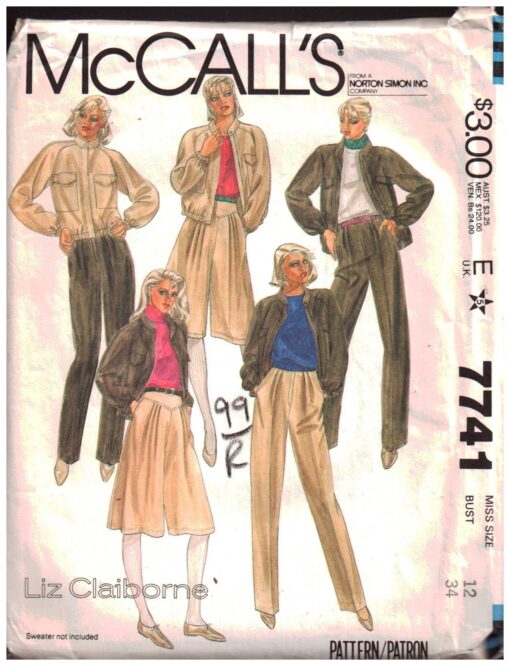 McCall’s 7741 Jacket, Culottes, Pants Size: 12 Used Sewing Pattern