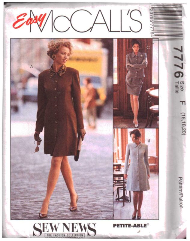 McCall’s 7776 Dress, Unlined Jacket, Skirt Size: F 16-18-20 or B 8-10-12 Uncut Sewing Pattern