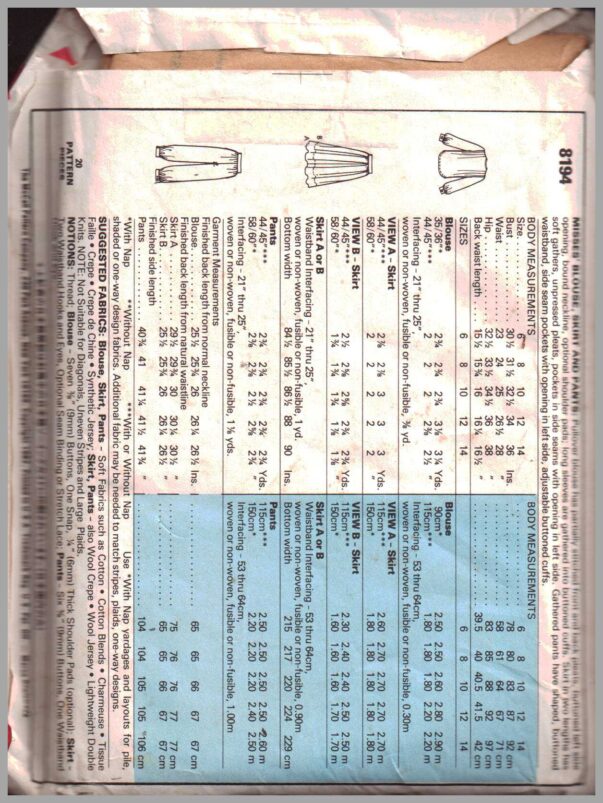 If this McCall’s 8194 sewing pattern is not exactly what you are looking for please do look at my other similar listings; I stock a wide variety of vintage and recycled patterns lovingly collected at estate sales, thrift stores and every place I can find them and listed here for your shopping convenience.