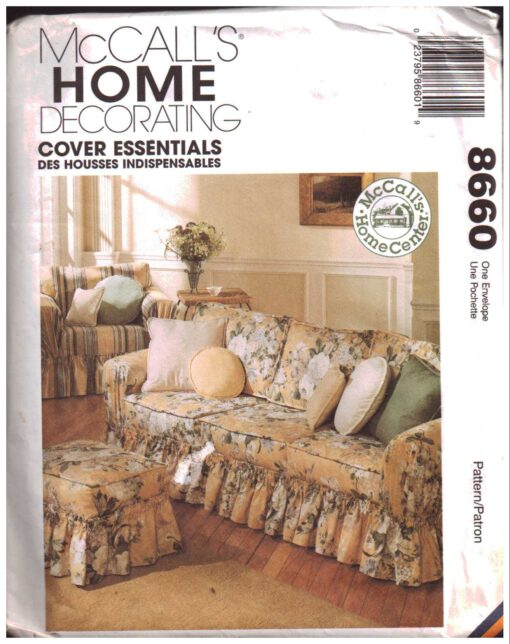 McCall’s 8660 Covers – Chair Slip Covers, Pillows Size: One Uncut Sewing Pattern