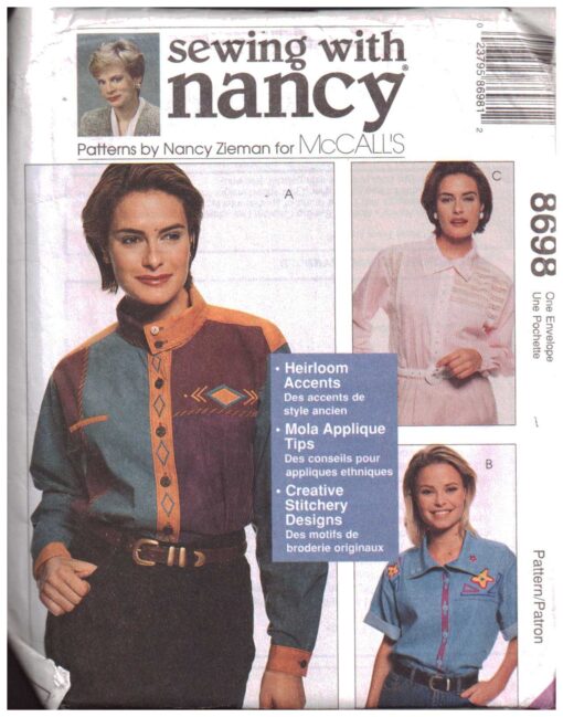 McCall’s 8698 Shirts by Nancy Zieman Size: 8-10/12-14/16-18/20-22 Uncut Sewing Pattern