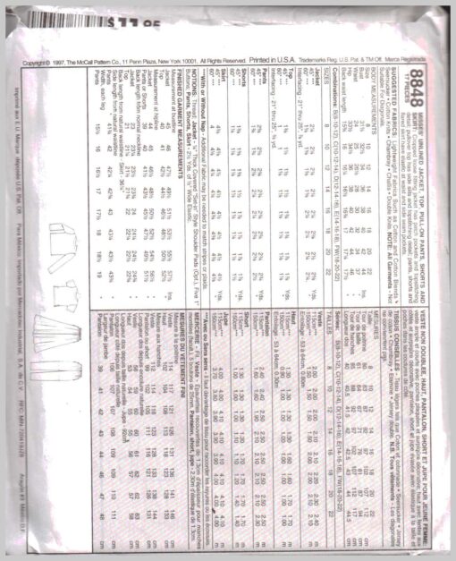 McCall’s 8848 Unlined Jacket, Top, Pull-on Pants, Shorts, Skirt Size: E 14-16-18 Uncut Sewing Pattern