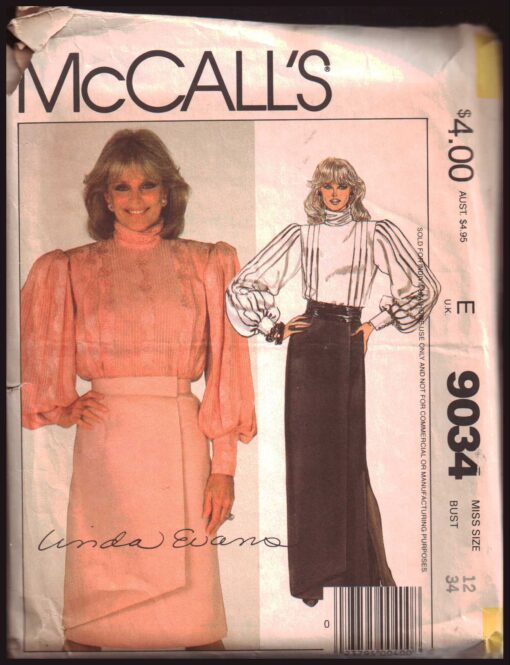 McCall’s 9034 Blouse, Skirt, Belt Size: 12 Bust 34 Used Sewing Pattern