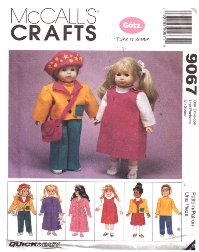 McCall’s 9067 Doll clothes Size: 18″ Used Sewing Pattern