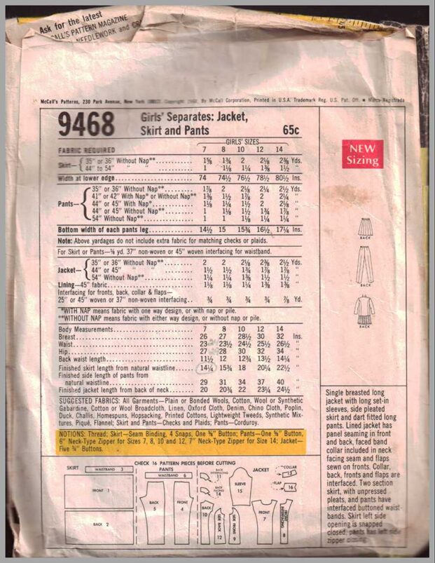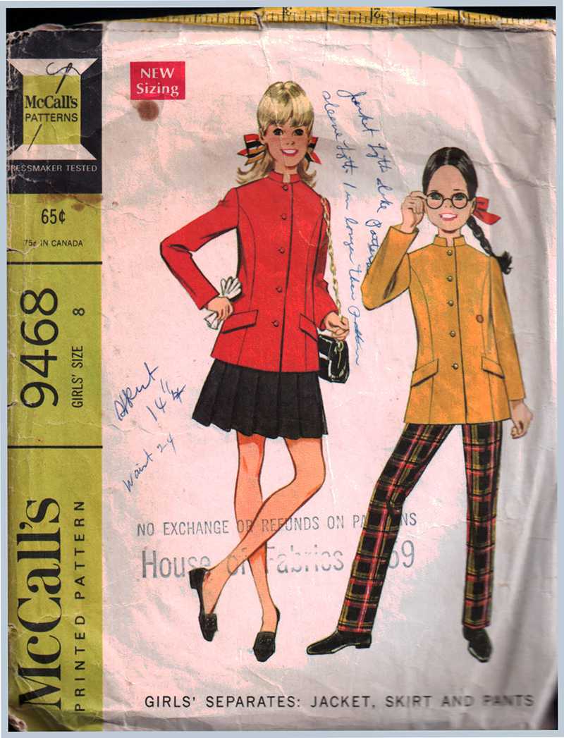 McCall’s 9468 Girls Jacket, Skirt, Pants Size: 8 Used Sewing Pattern