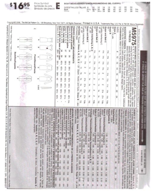 McCall’s M5975 Dress Size: F5 16-18-20-22-14 Uncut Sewing Pattern