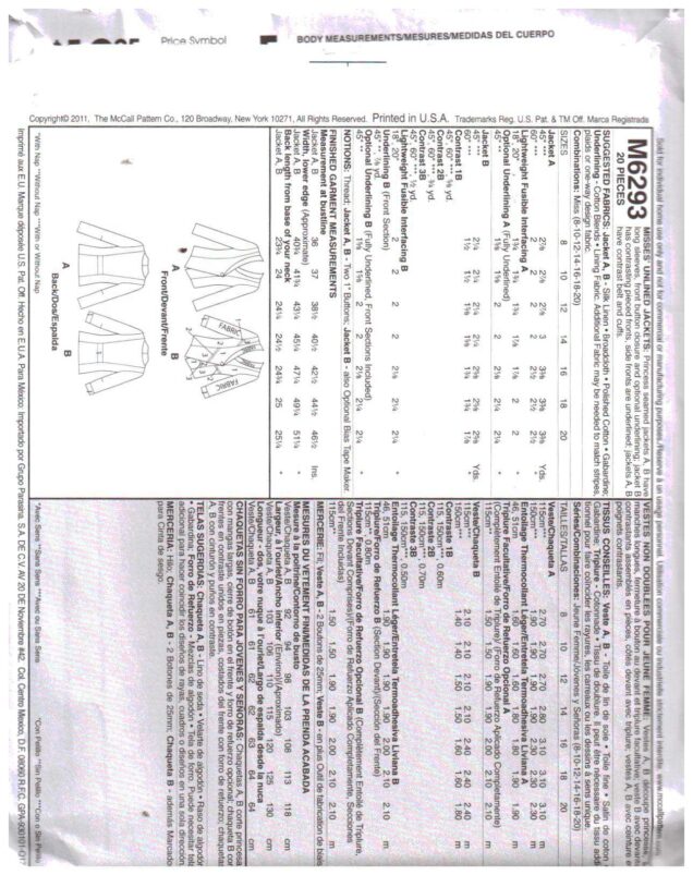 McCall’s M6293 Jackets Size: 8-10-12-14-16-18-20 Uncut Sewing Pattern