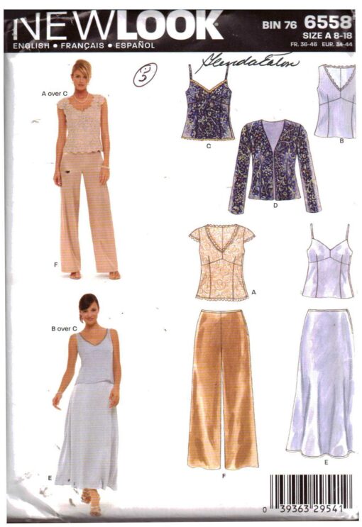 New Look 6558 Pants, Skirts, Tops, Jacket Size: A 8-18 Uncut Sewing Pattern