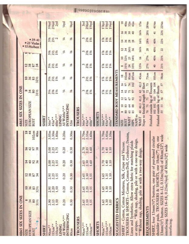 New Look 6865 Pants, Shorts, Top Size: 8-18 Uncut Sewing Pattern