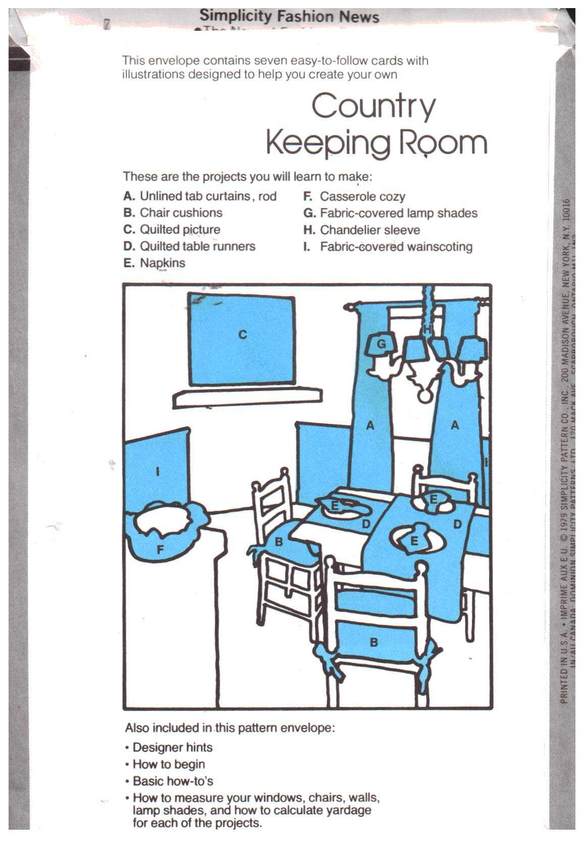 Simplicity 113 Country Keeping Room Size: One Uncut Sewing Pattern