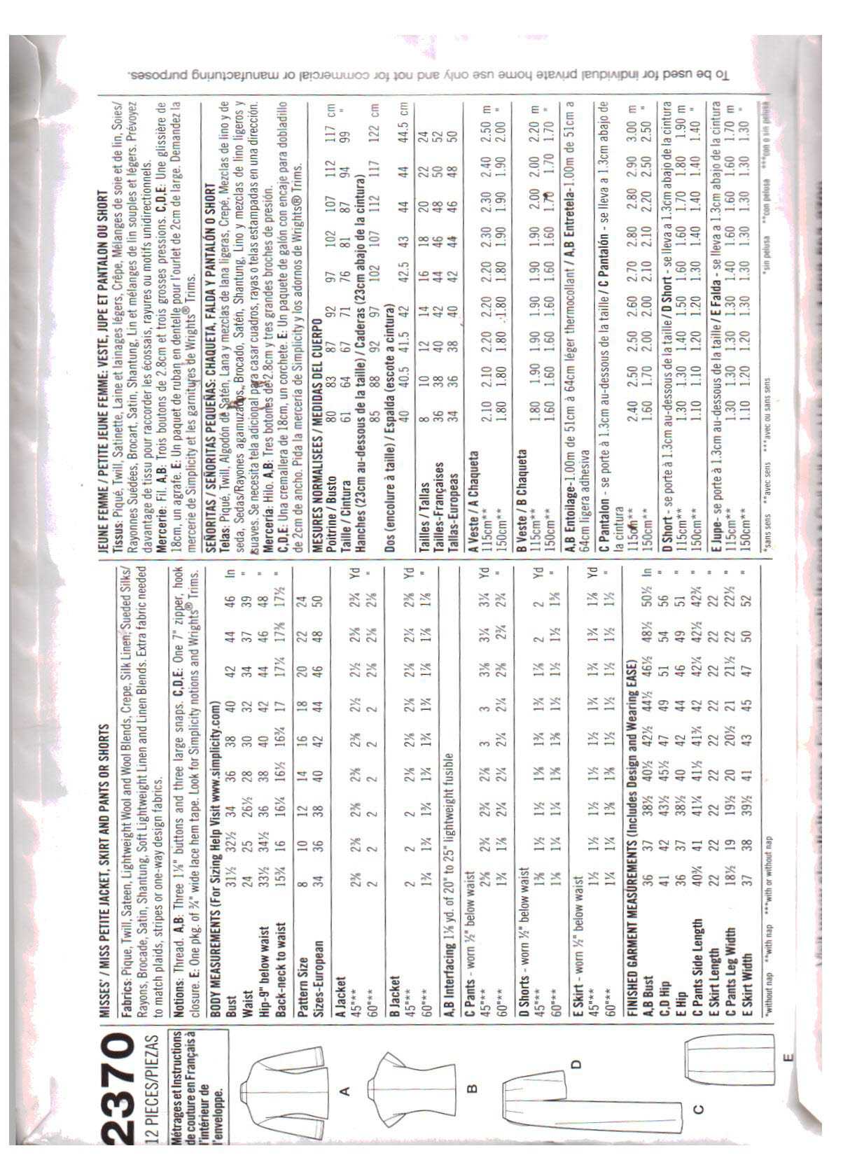 Simplicity 2370 Jacket, Skirt, Pants, Shorts Size: U5 14-24 Uncut Sewing Pattern