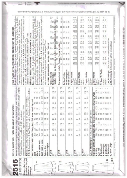 Simplicity 2516 Skirts Size: K5 8-16 Uncut Sewing Pattern