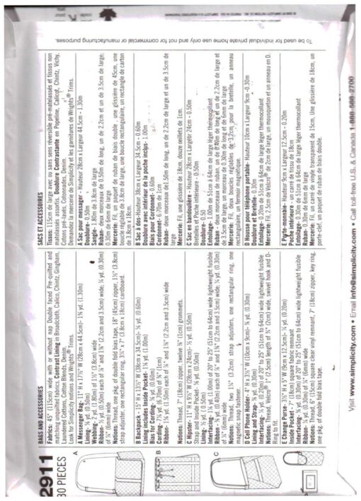 Simplicity 2911 Bags and Accessories Size: One Uncut Sewing Pattern