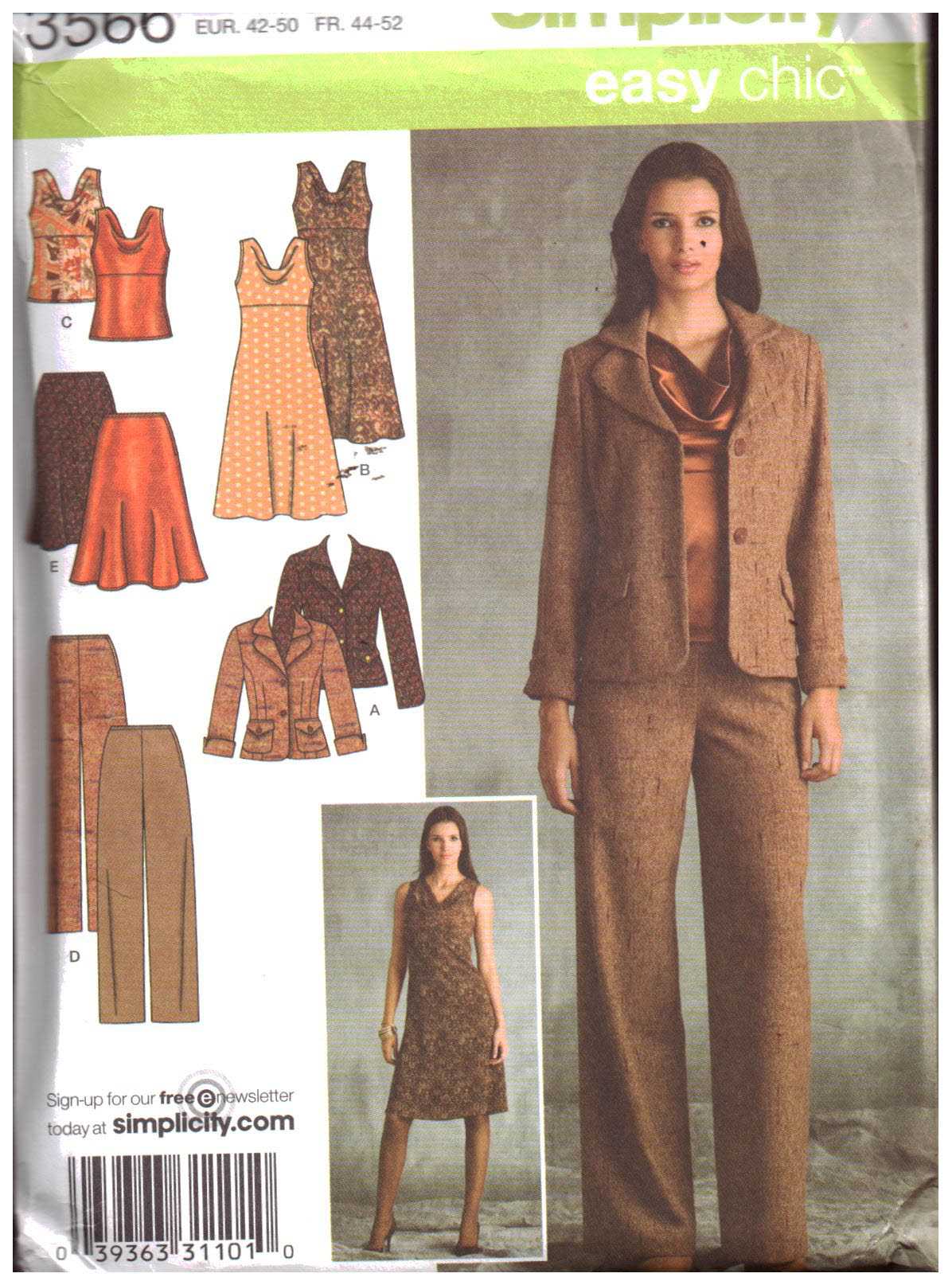 Simplicity 3566 Jacket, Pants, Bias Skirt, Dress, Top Size: U5 16-24 Uncut Sewing Pattern