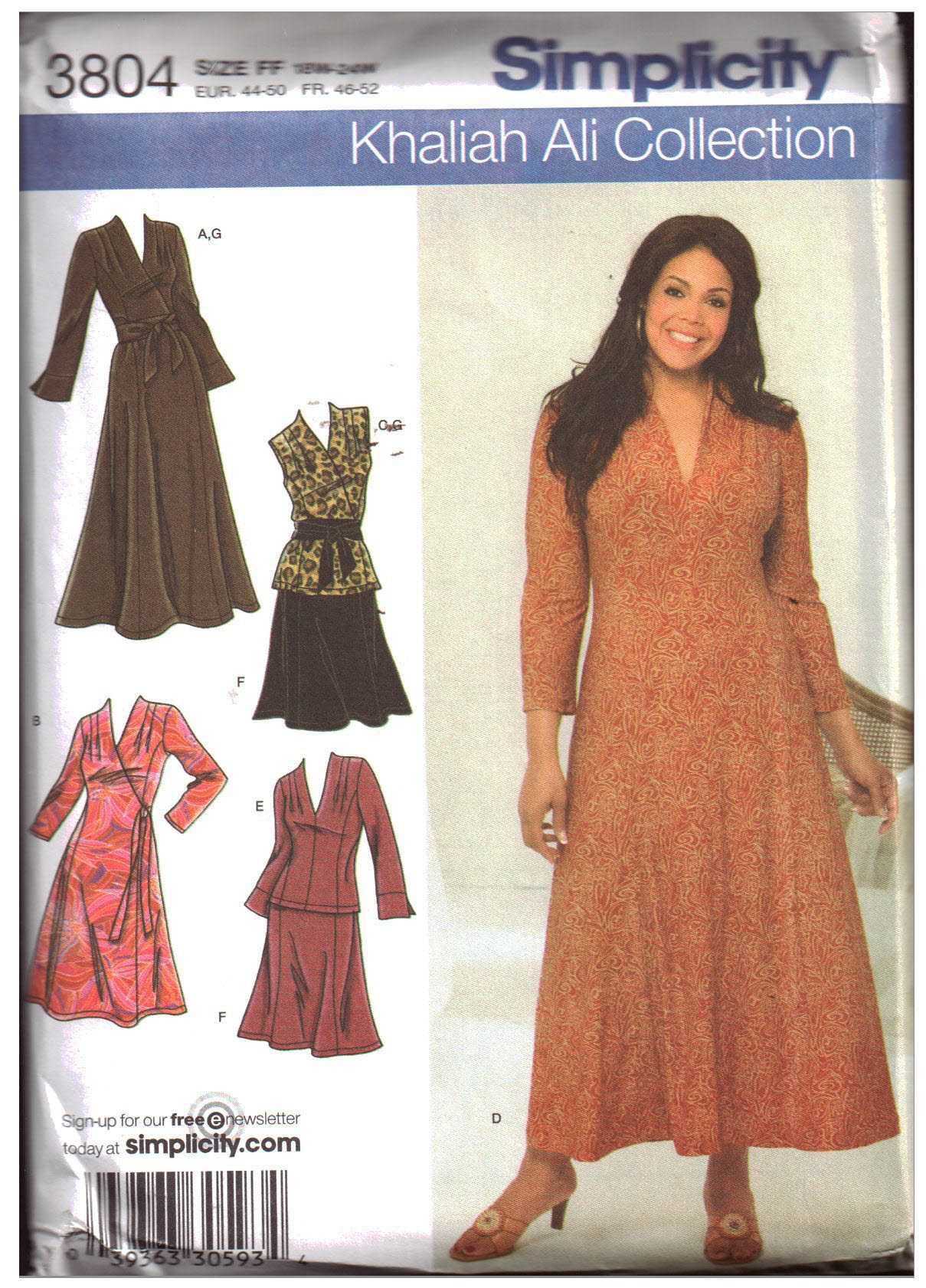 Simplicity 3804 Dress, Top, Skirt by Khaliah Ali Size: FF 18W-24W Uncut Sewing Pattern