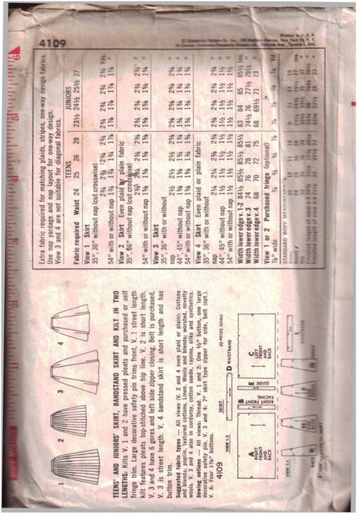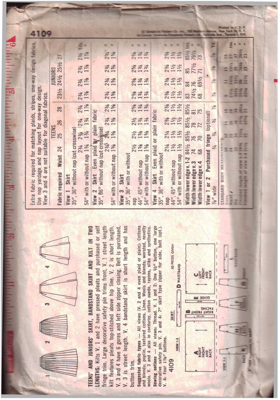 Simplicity 4109 Skirts Size: Waist 24.5 Hip 33.5 Used Sewing Pattern