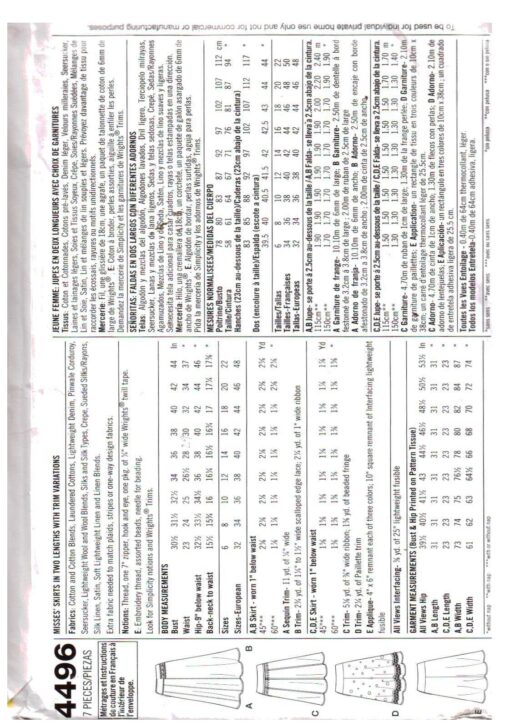 Simplicity 4496 Skirt Size: H5 6-14 Used Sewing Pattern