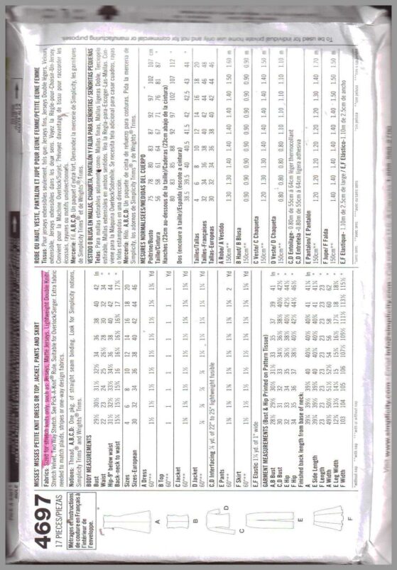 If this Simplicity 4697 sewing pattern is not exactly what you are looking for please do look at my other similar listings; I stock a wide variety of vintage and recycled patterns lovingly collected at estate sales, thrift stores and every place I can find them and listed here for your shopping convenience.