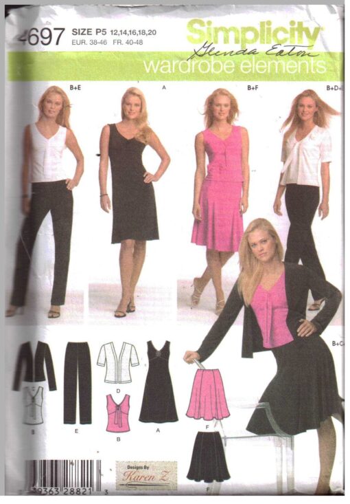 Simplicity 4697 Dress, Top, Jacket, Pants, Skirt Size: P5 12-14-16-18-20 Uncut Sewing Pattern