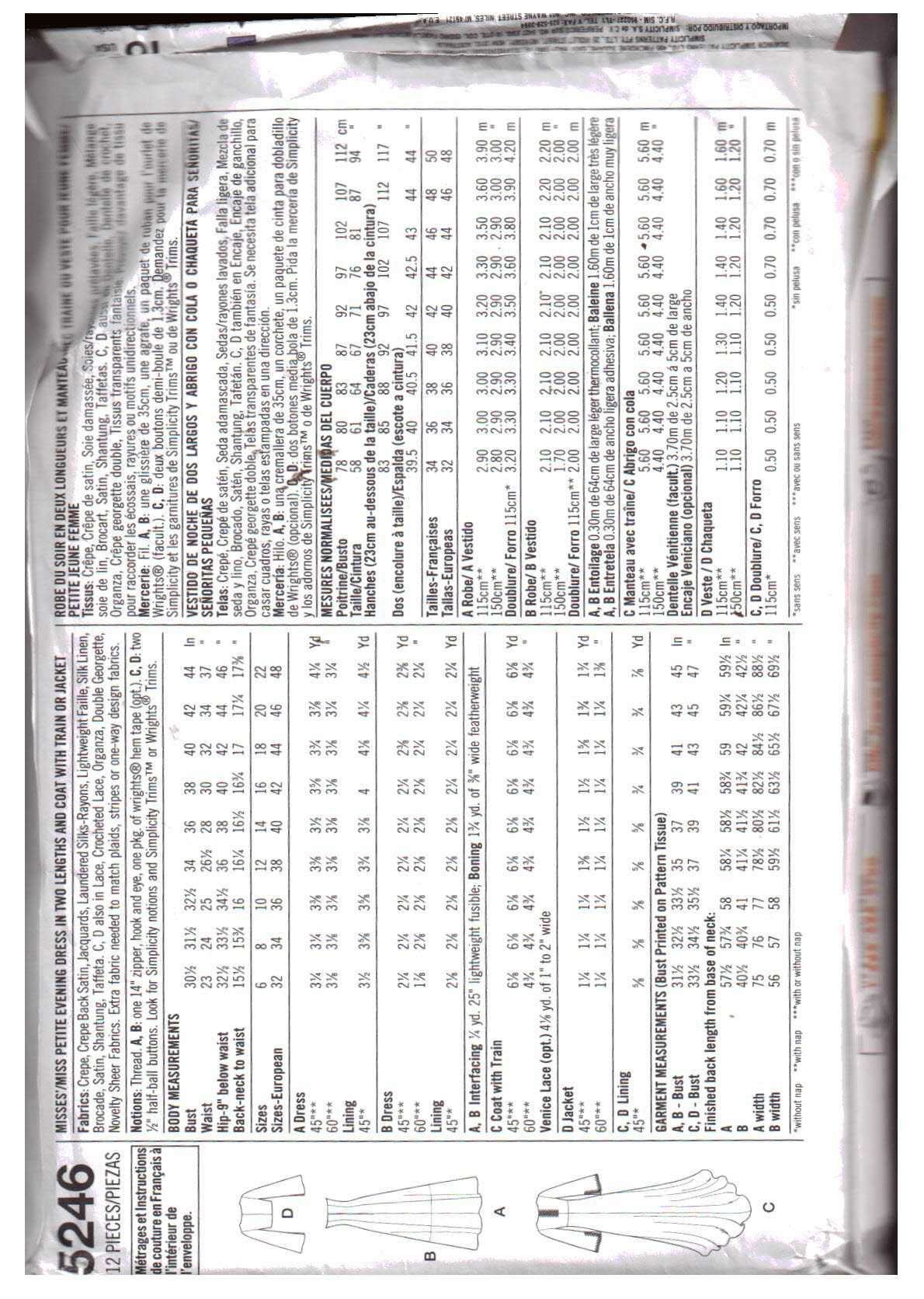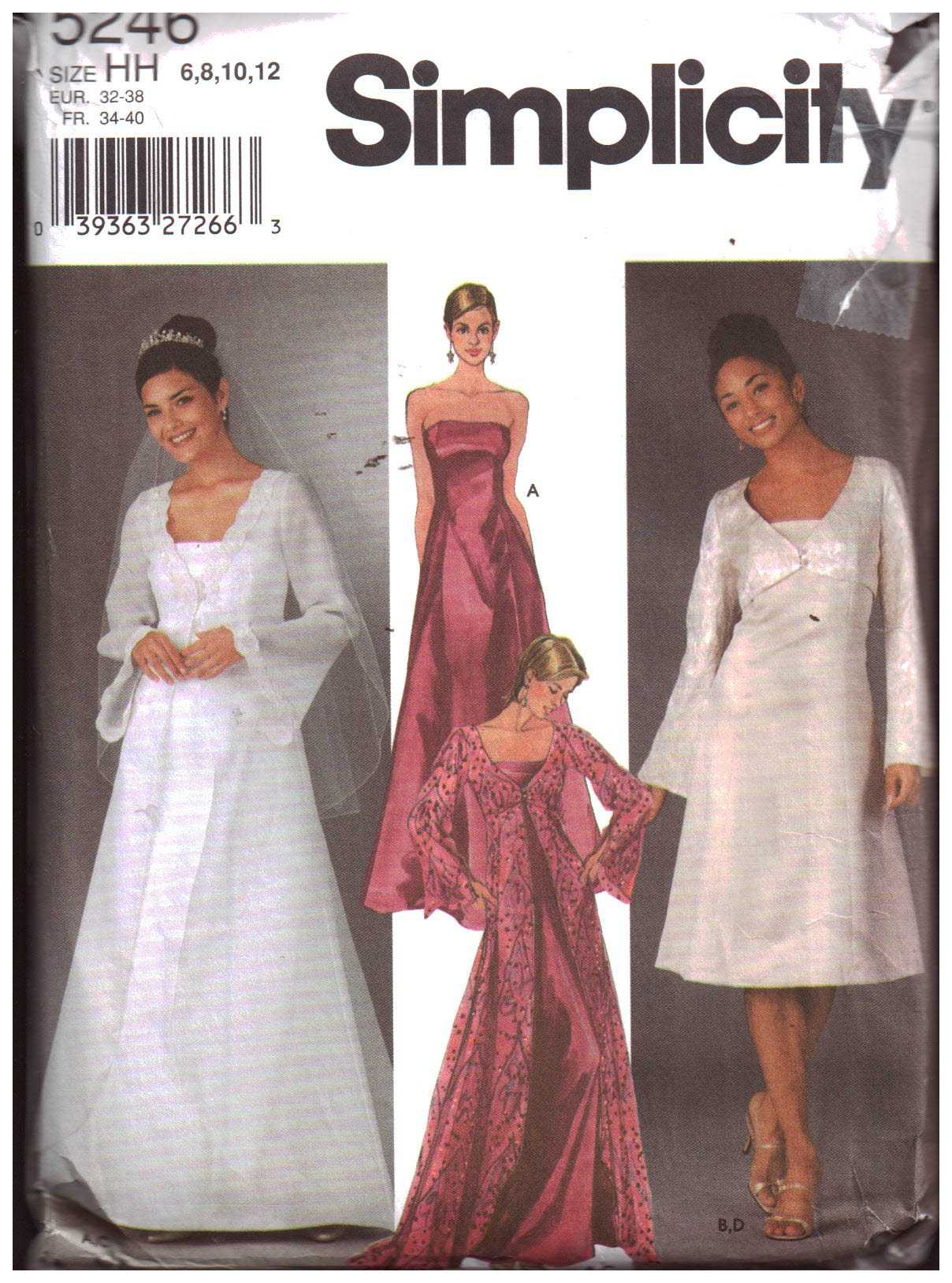 Simplicity 5246 Evening Dress, Coat with Train, Jacket Size: HH 6-12 Used Sewing Pattern