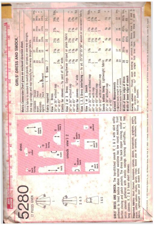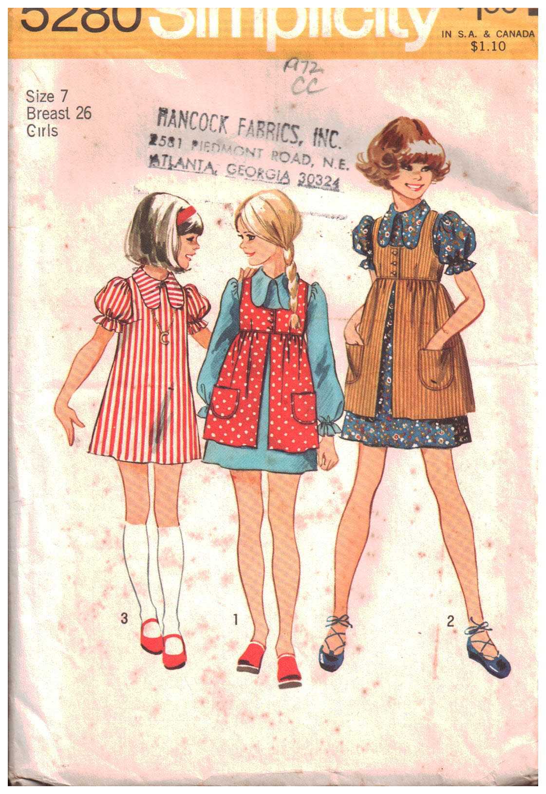Simplicity 5280 Girls Dress, Smock Size: 7 Breast 26 Used Sewing Pattern