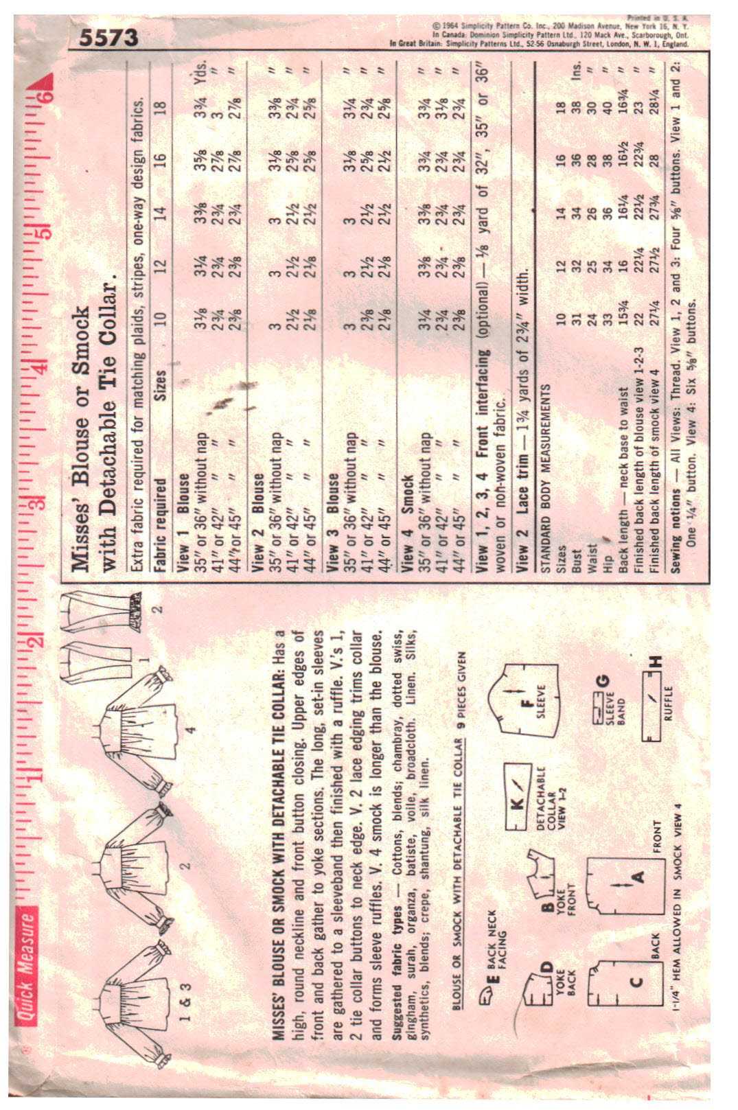 Simplicity 5573 Tops Size: 12 Bust 32 Uncut Sewing Pattern