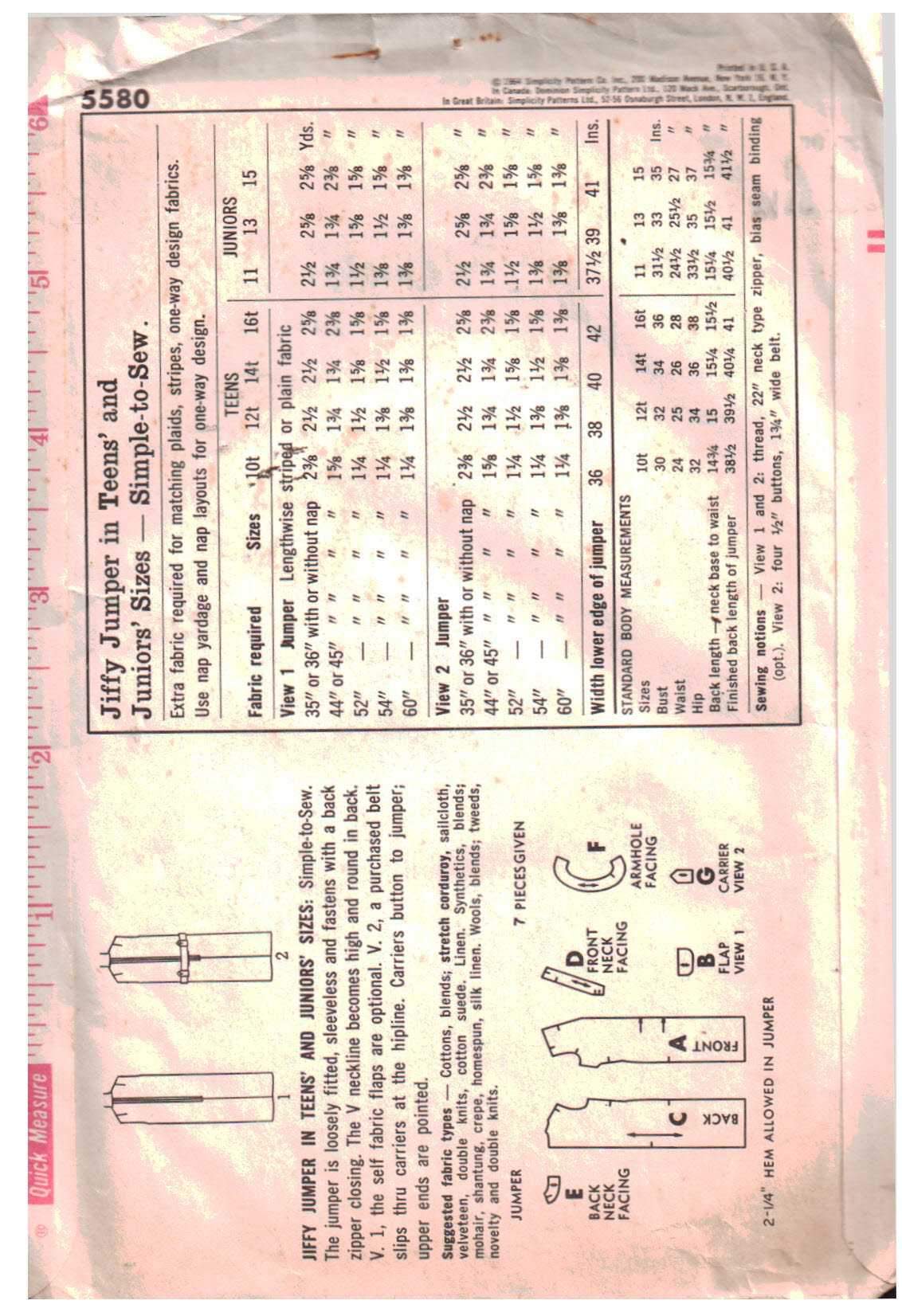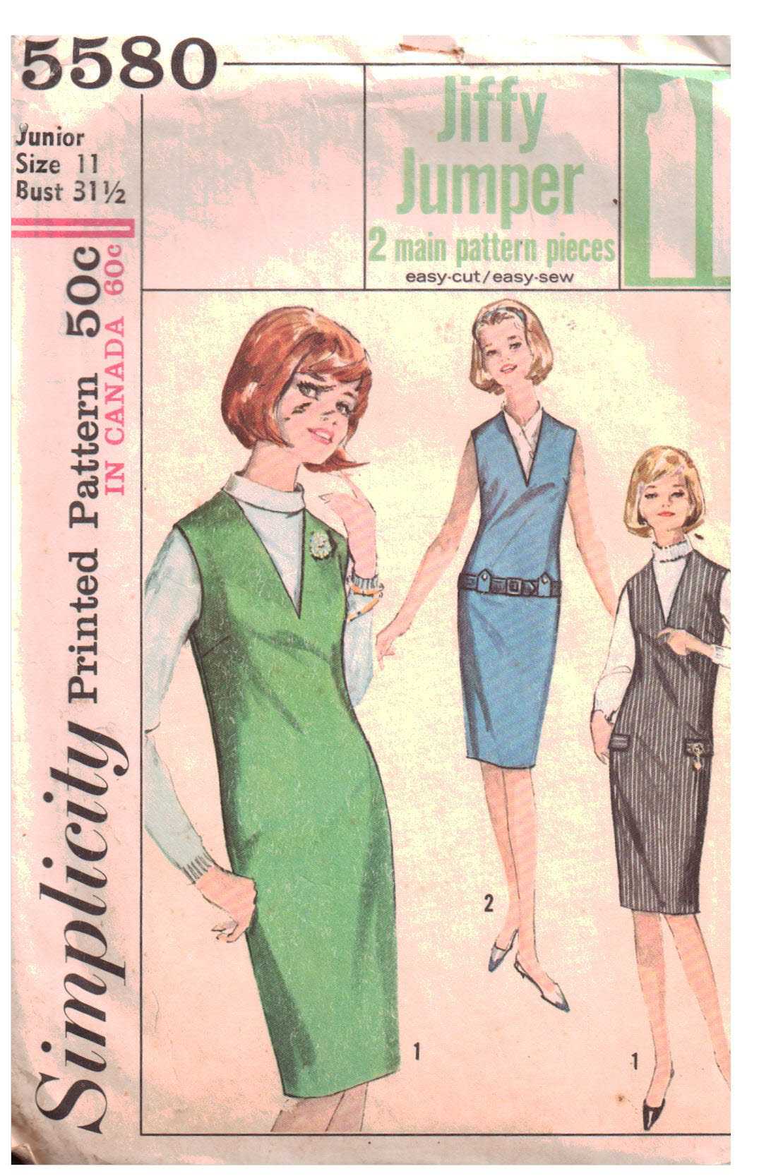 Simplicity 5580 Jumper Size: 11 Bust 31.5 Used Sewing Pattern