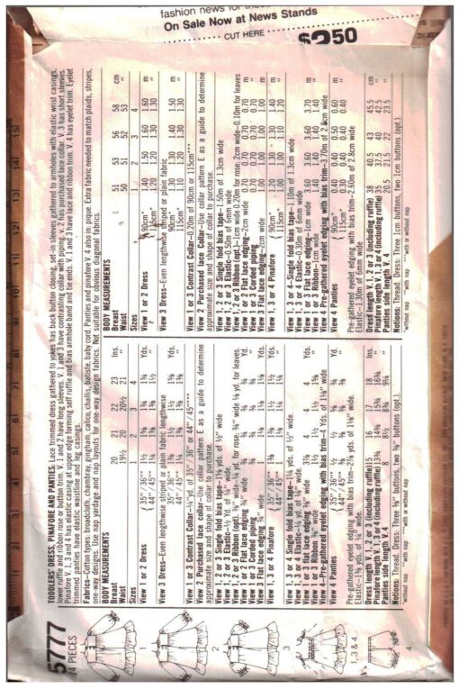Simplicity 5777 Girl’s Dress , Pinafore, Panties Size: 3 Used Sewing Pattern