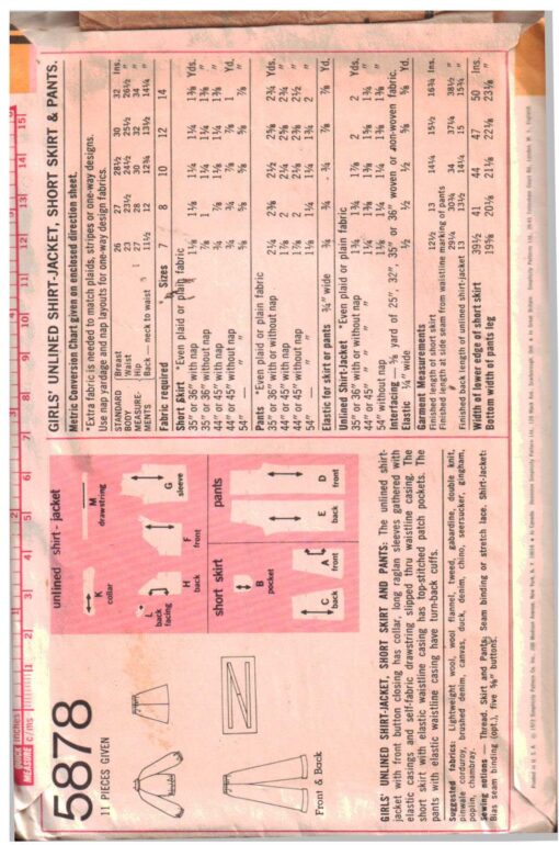 Simplicity 5878 Shirt-Jacket, Skirt, Pants Size: 10 Breast 28.5 Used Sewing Pattern
