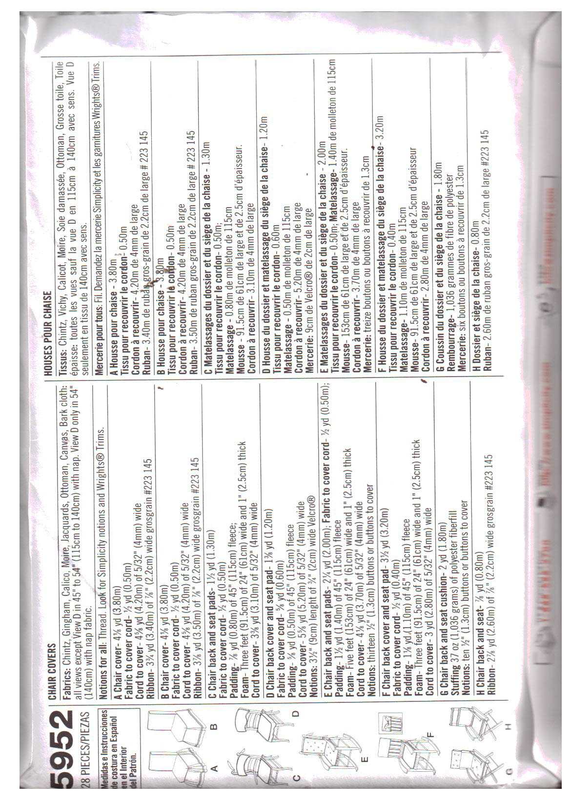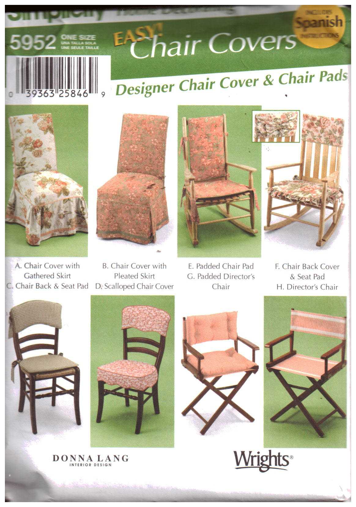 Simplicity 5952 Chair Covers Size: One Uncut Sewing Pattern