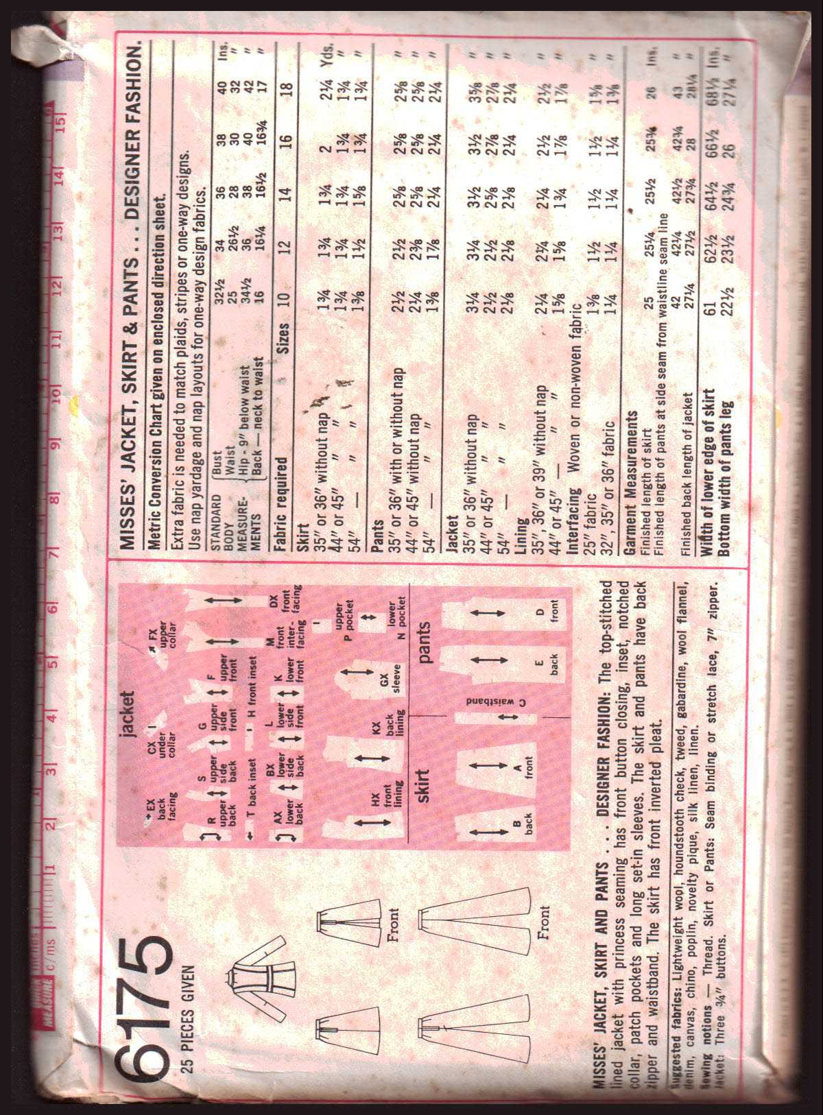 Simplicity 6175 Jacket, Skirt, Pants Size: 12 Bust 34 Used Sewing Pattern