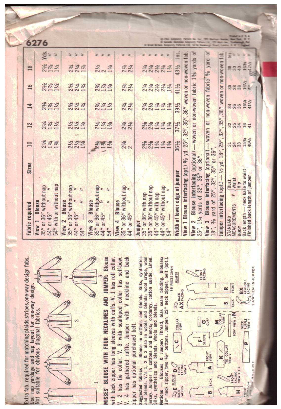 Simplicity 6276 Blouse, Jumper Size: 12 Bust 32 Used Sewing Pattern