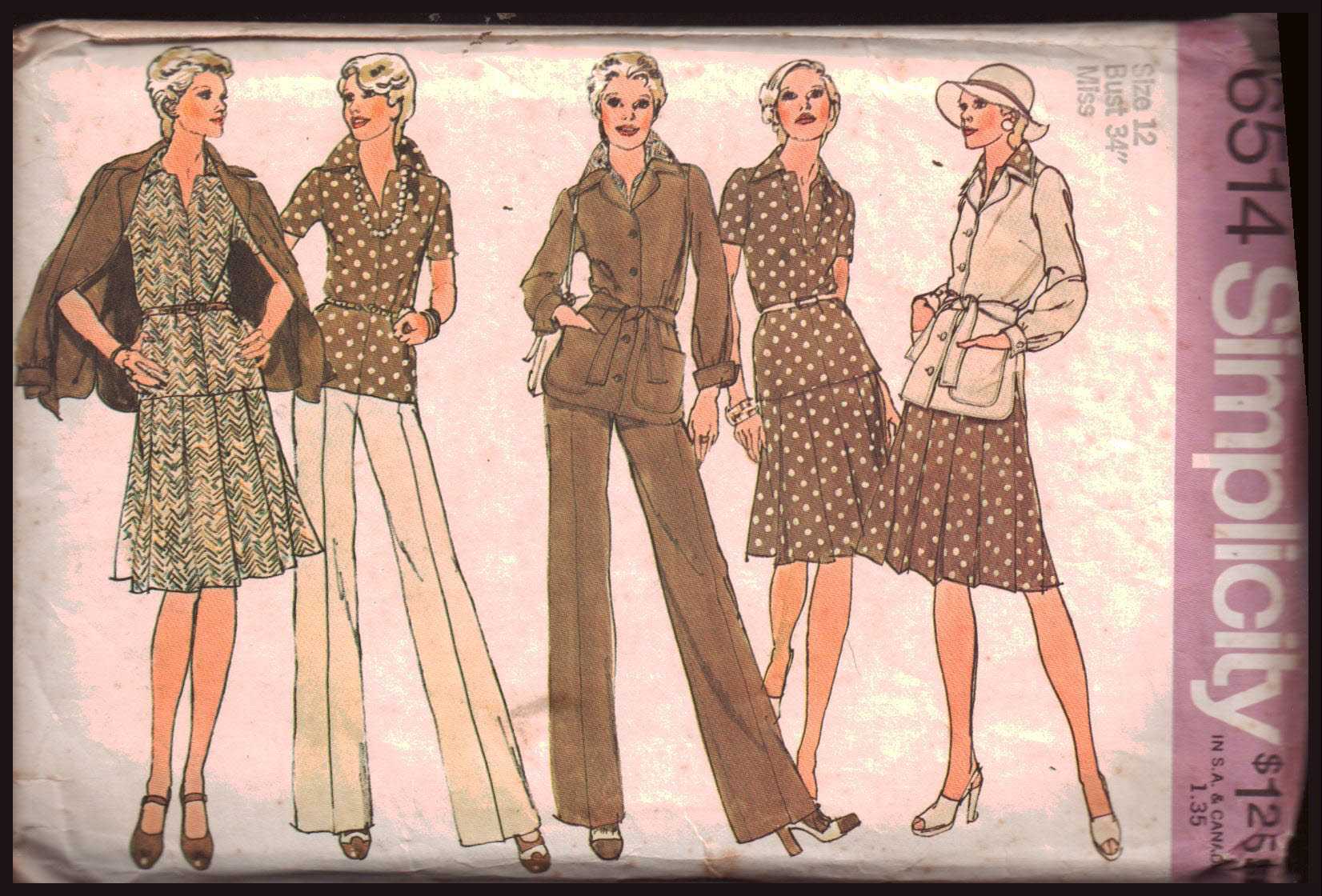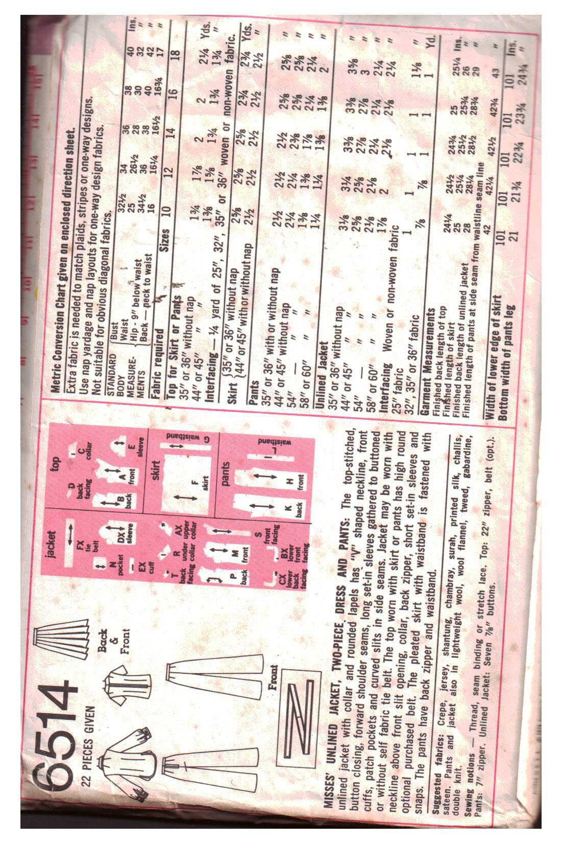 Simplicity 6514 Jacket, Top, Skirt, Pants Size: 12 Bust 34 Used Sewing Pattern