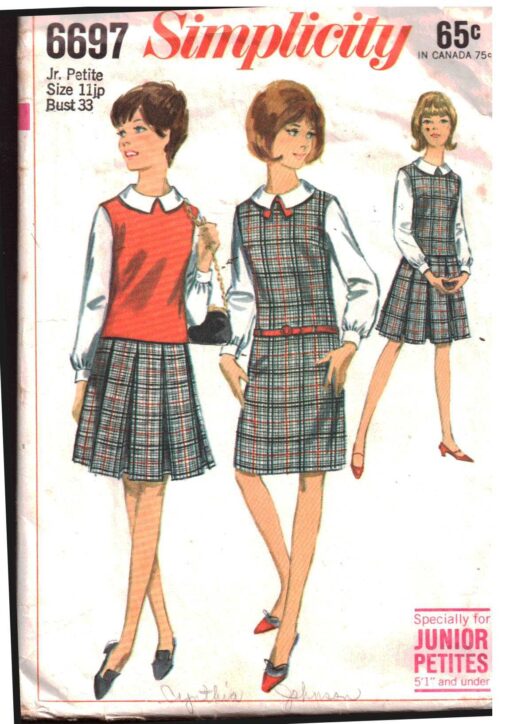 Simplicity 6697 Jumper, Top, Skirt, Blouse Size: 11J Bust 33 Used Sewing Pattern