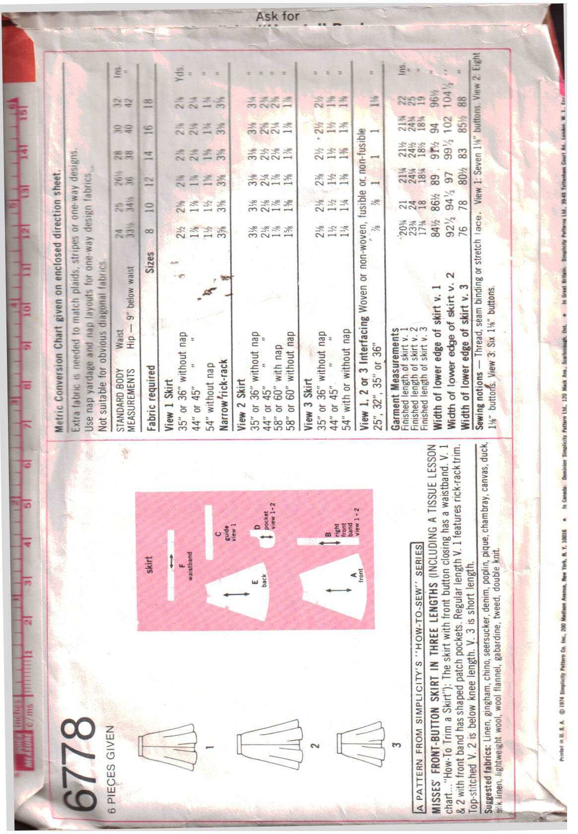 Simplicity 6778 Skirts Size: 12 Used Sewing Pattern