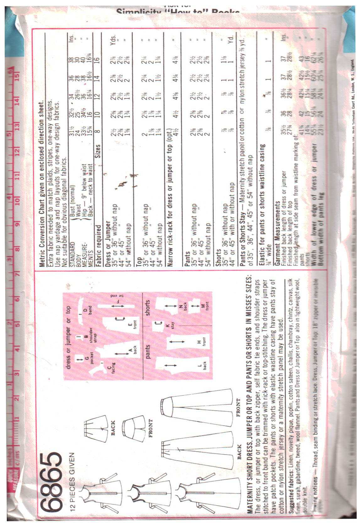 Simplicity 6865 Maternity Dress, Jumper, Top, Pants, Shorts Size: 8 or 12 Used Sewing Pattern